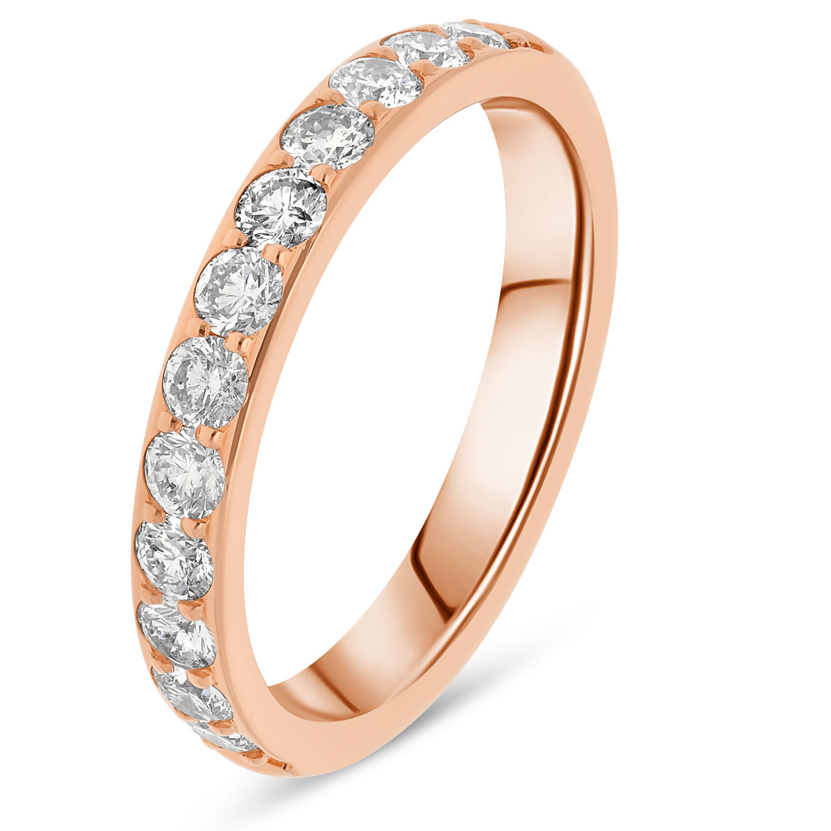 Sublime alliance de mariage pour femme en or rose, avec diamants taille brillant de qualité HSI ou GVS, demi tour serti mini griffes. Existe en plusieurs versions de 0.34 à 0.84 carat. L'intérieur est massif pour permettre la gravure et arrondi pour plus de confort.