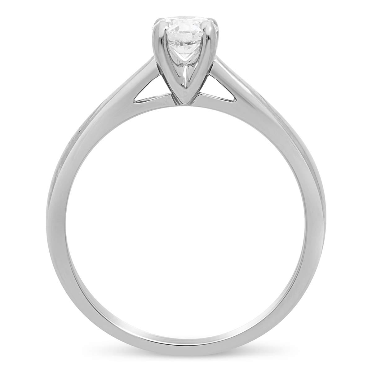 Classique et intemporelle, la bague de fiançailles diamant MATAIVA est sertie de manière à attirer toute la lumière sur sa pièce centrale, un magnifique diamant taille brillant. Même si le diamant est rond, le sertissage quatre griffes lui confère une forme légèrement carré. Elle se marie facilement avec toutes les alliances classiques en diamant demi tout et tour complet.