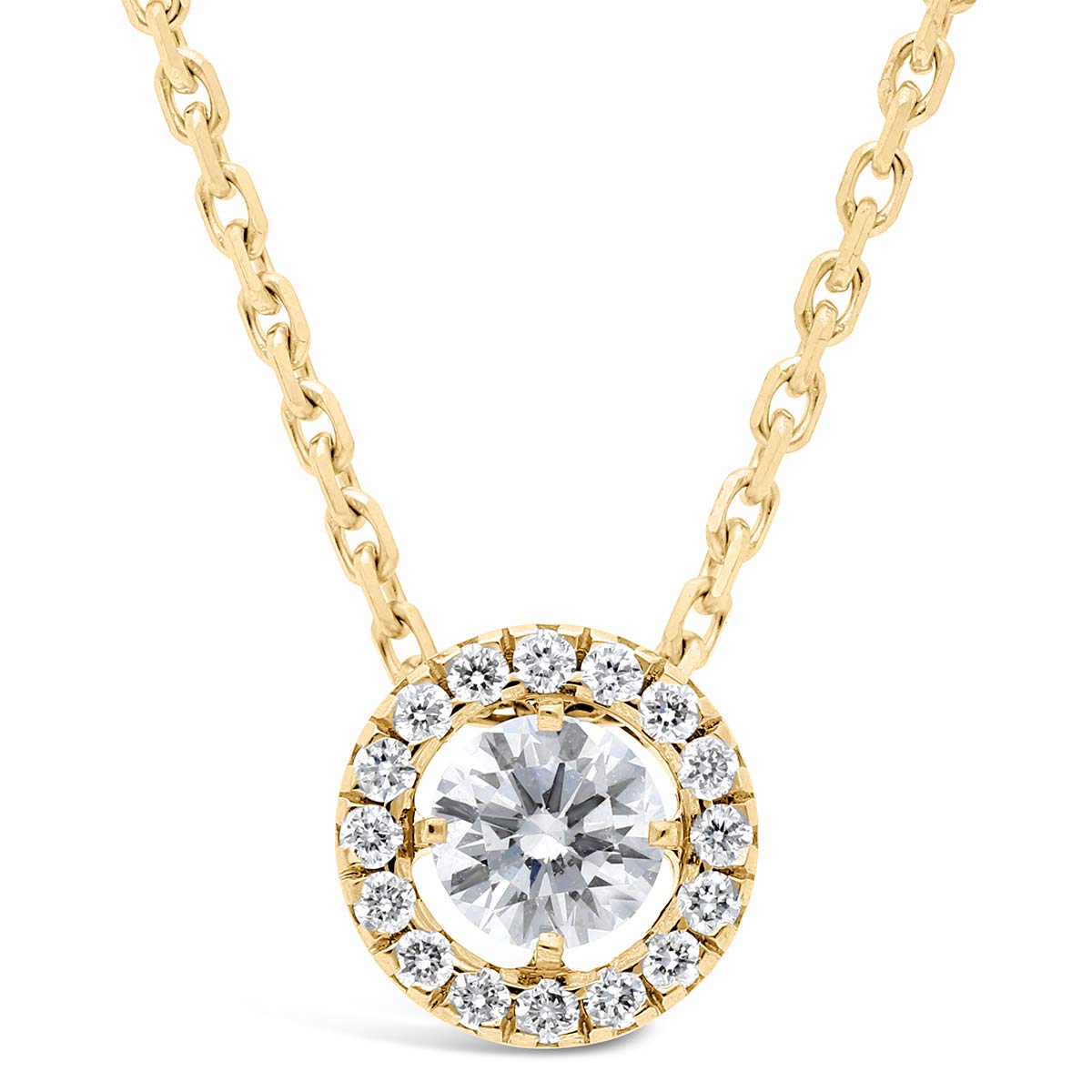 La monture en or jaune 18 carats avec entourage en diamants HSI de 0,15 carats. Le diamètre varie est de 8 à 9 mm en fonction du poids du diamant de centre.