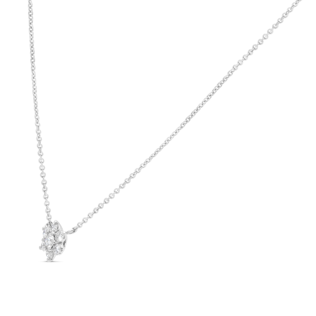 Pendentif en diamants pavés en étoile, mesurant 6,1 mm. Le pendentif est vendu aves sa chaîne en maille forçat de 42 cm. Le bijou est en or 750/1000.