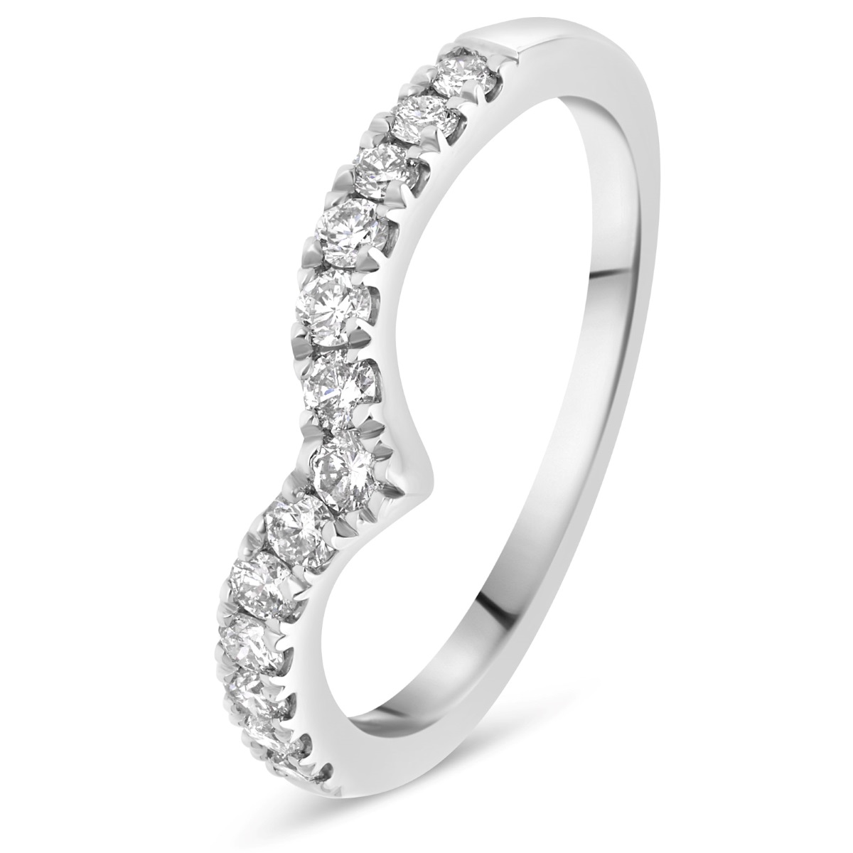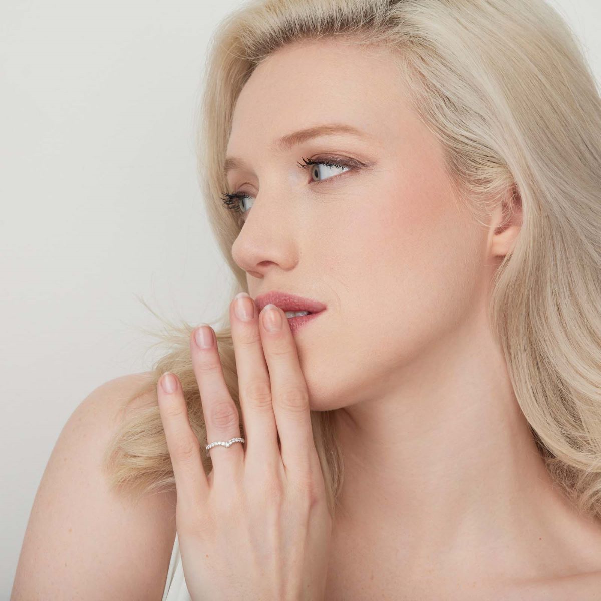 Raffinée et moderne, alliance en V, en platine 950 millièmes, peut être portée seule ou associée à votre bague de fiançailles.