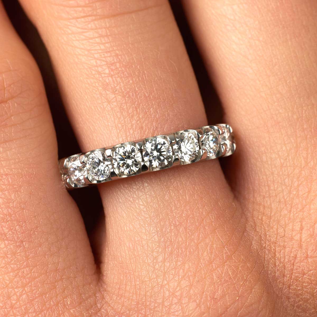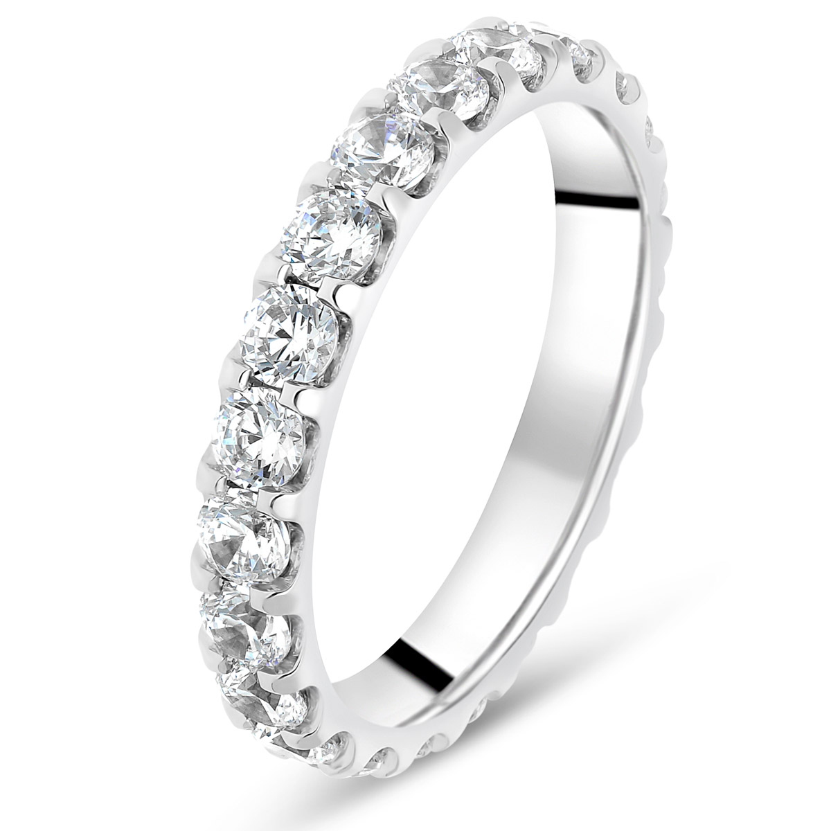Classique, indémodable, merveilleuse, cette alliance diamants "Tour Complet Serti Griffes" c'est notre bestseller absolu parmi les alliances diamants. Voici sa version en or blanc 18 carats sertie de diamants taille brillant de qualité HSI ou GVS. Vous pouvez choisir le poids carat de diamants pour trouver votre alliance parfaite. L'intérieur est massif pour permettre la gravure et arrondi pour plus de confort.