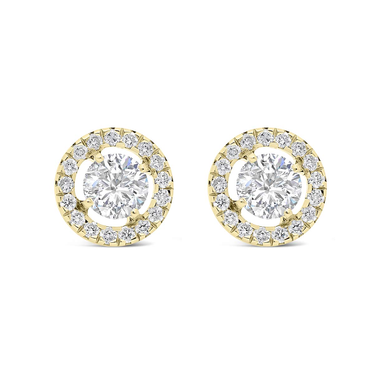 La monture en or jaune 18 carats avec entourage en diamants HSI de 0,15 carats. Le diamètre varie est de 7,4 à 8,6 mm en fonction du poids du diamant de centre.