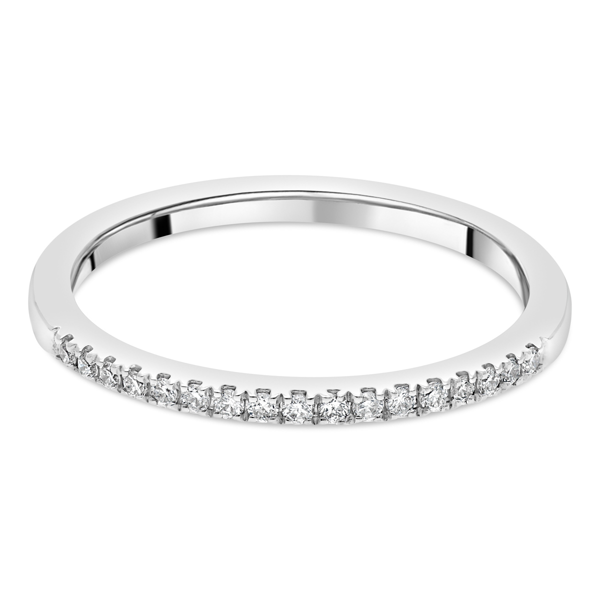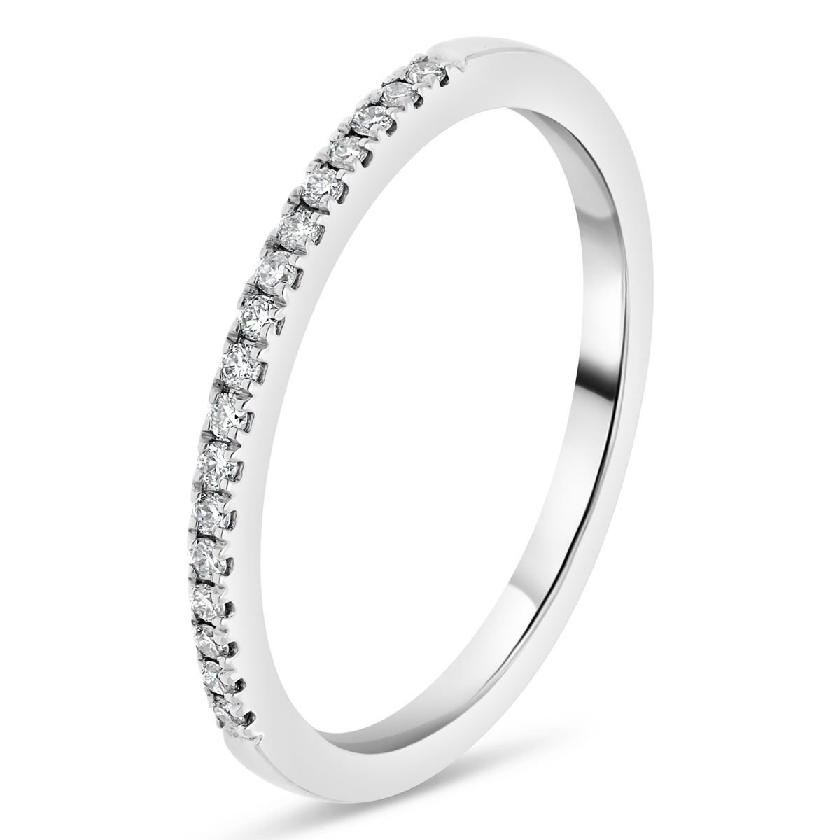 Alliance de mariage sertie de 21 diamants en demi tour maintenus par mini griffes. Sa largeur est de 1,3 mm de et son épaisseur - de 1,9 mm.