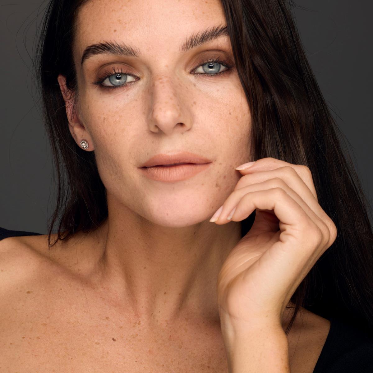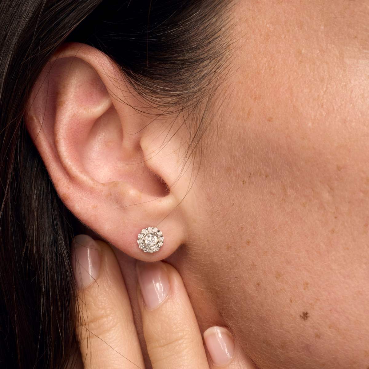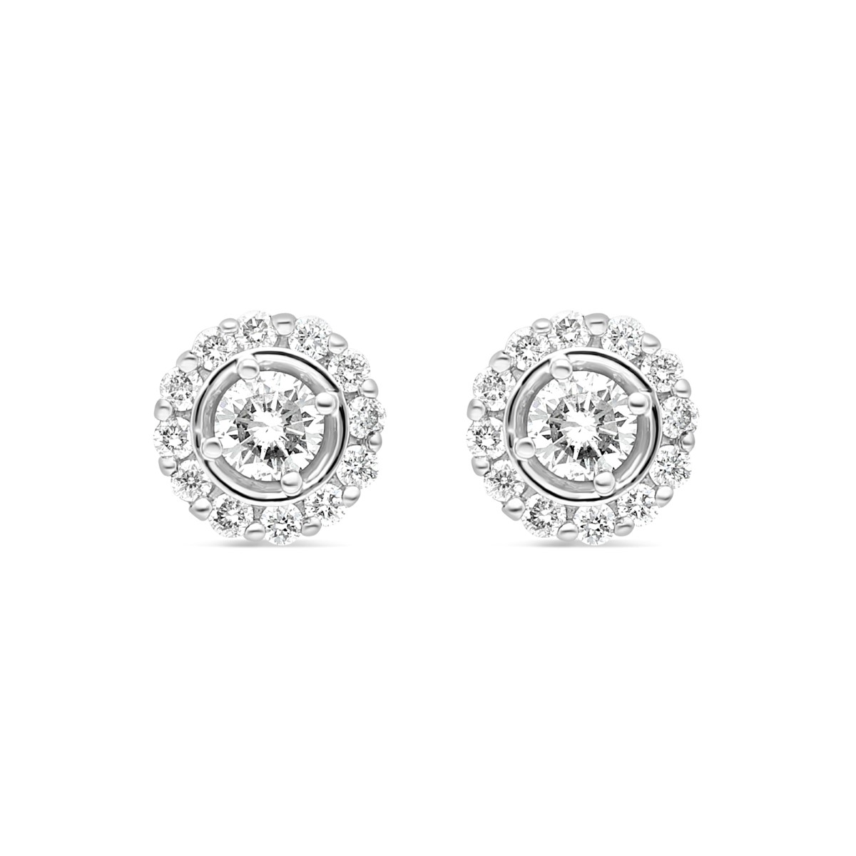Boucles d'oreilles diamants en or 750 millièmes. Leur diamètre est de 7 mm. Les boucles d'oreilles sont pourvues d'un fermoir de sécurité.