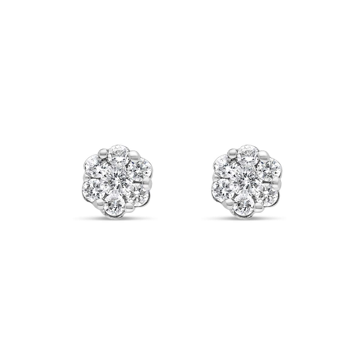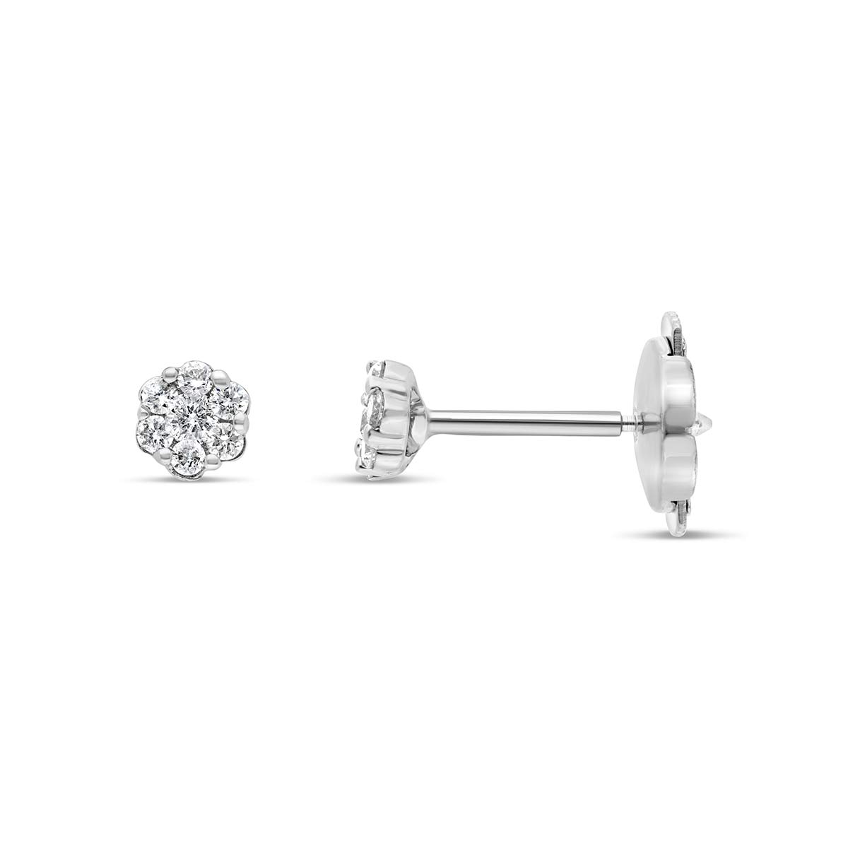 Clous d'oreille en diamants, pavés en fleur. Les clous sont pourvus d'un fermoir de sécurité. Le diamètre est de 4,0 mm.